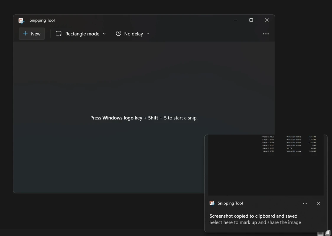 Snipping tool is a tiny and free-to-use tool developed by Microsoft Corporation for Windows 11 and other versions. You can use it by simply pressing Win + Shift + S and selecting the screenshot option from the drop-down menu.